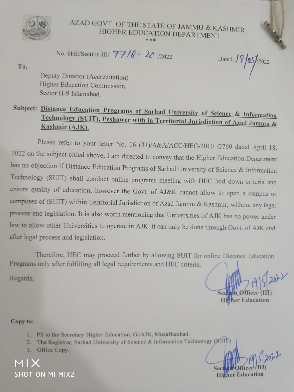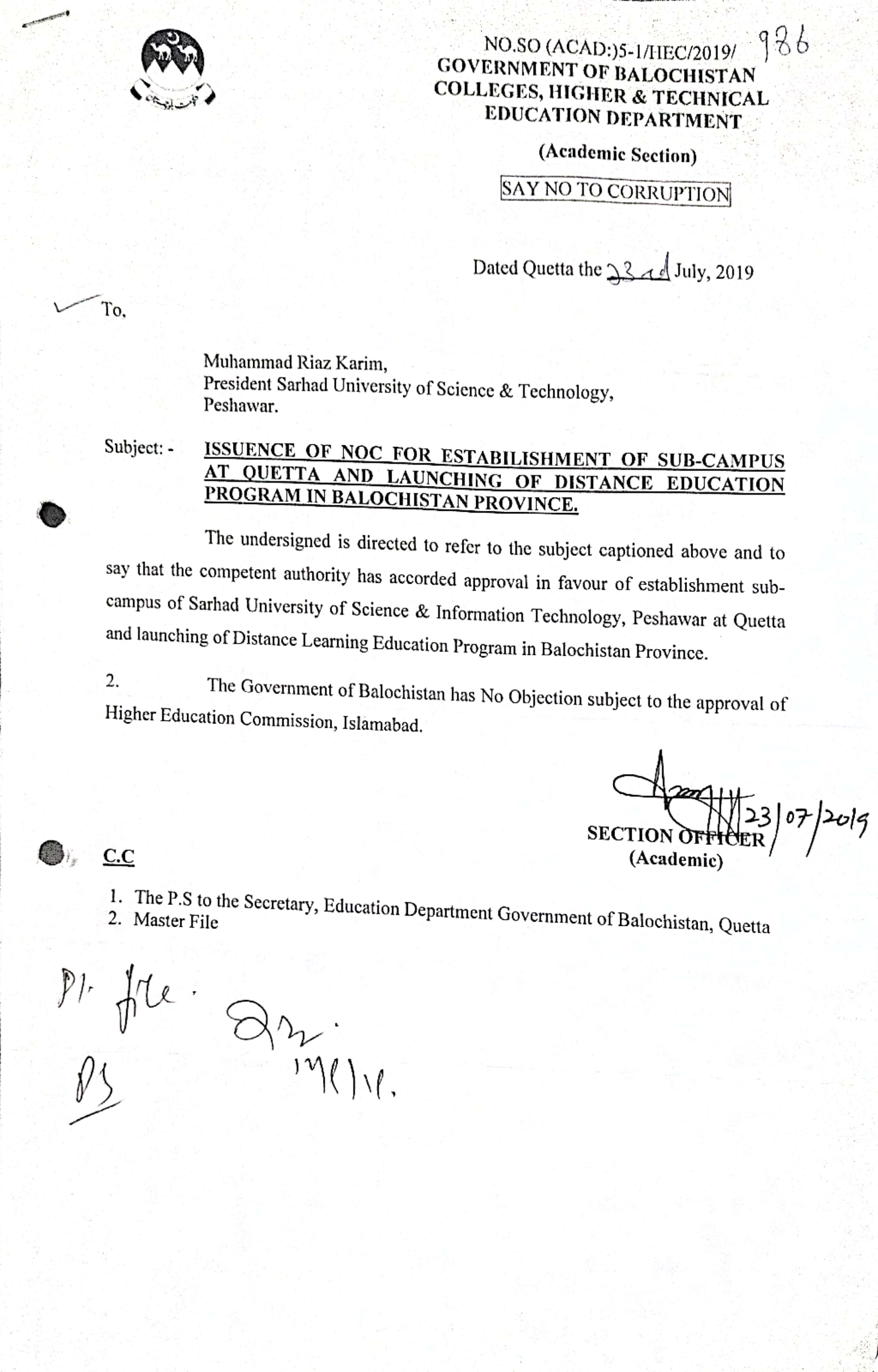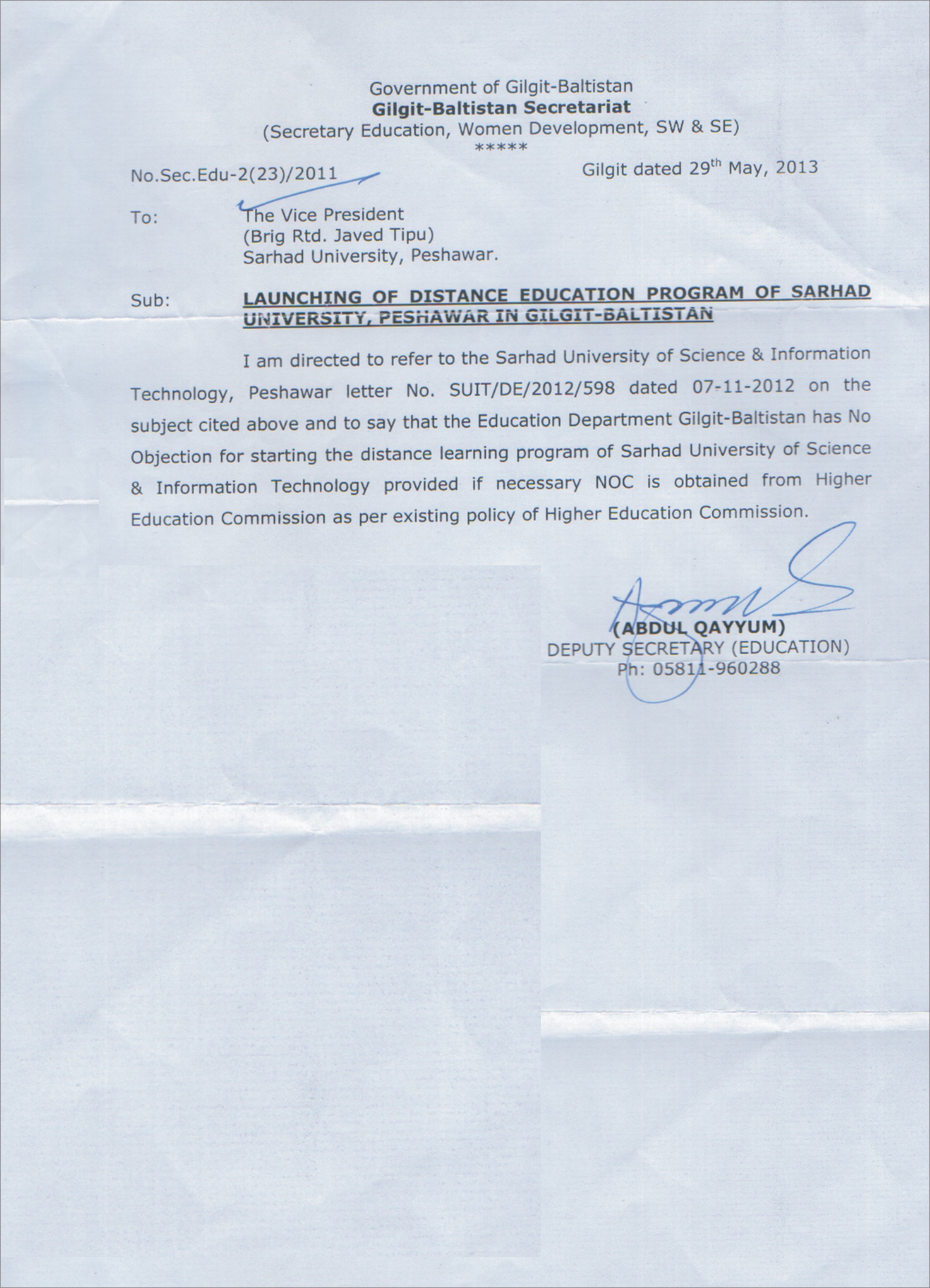 The province/region wise details regarding SUIT's legal status to offer Distance Learning Programs is as under and available at: https://www.suit.edu.pk/#/Distance-Education