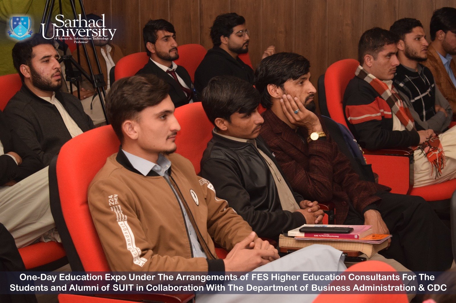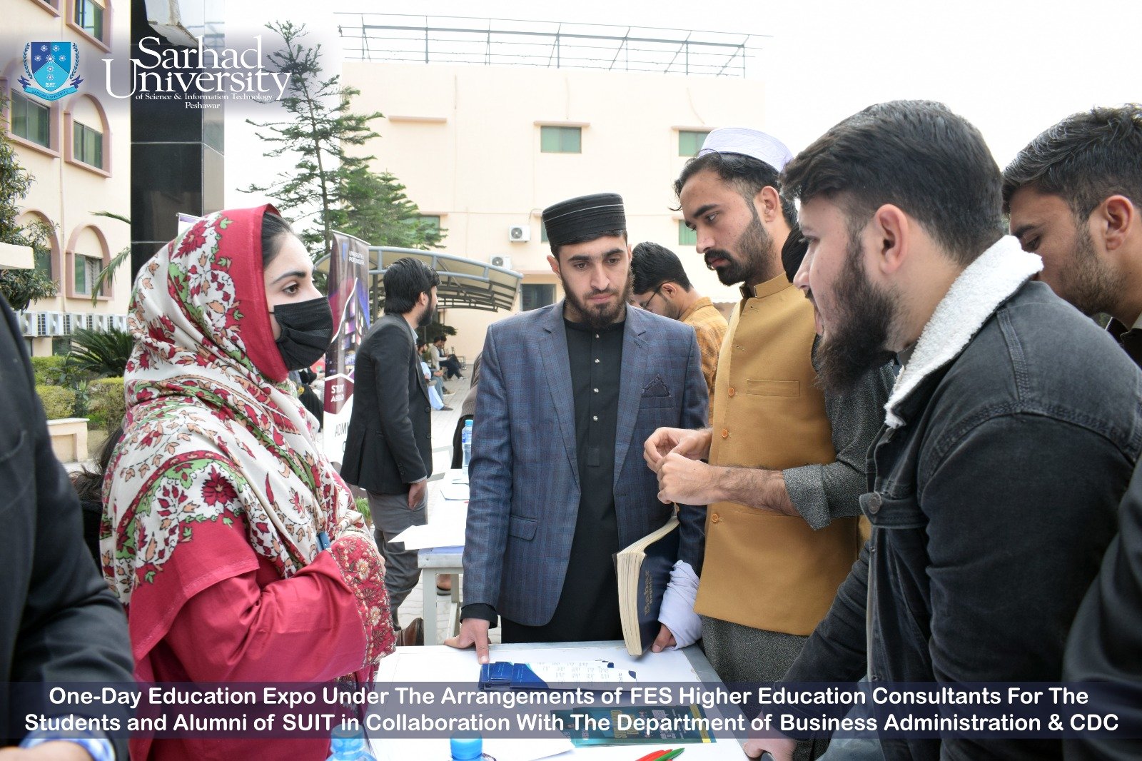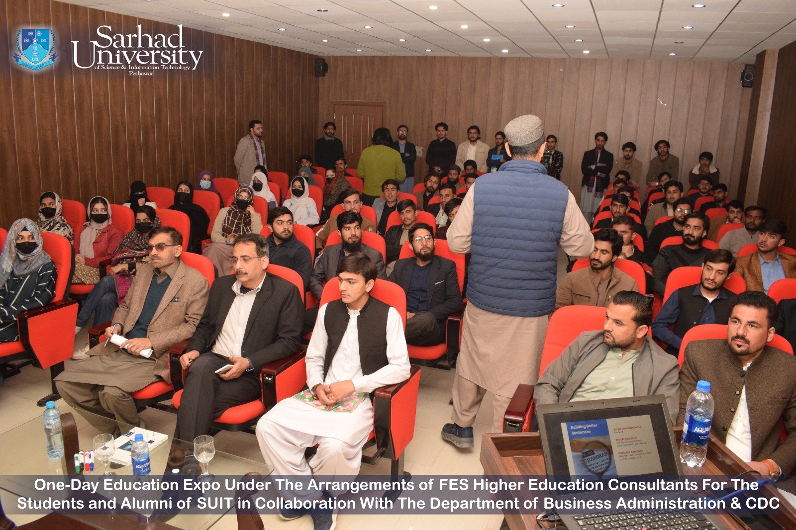 A One-Day Education Expo was organized under the arrangement of FES Higher Education Consultants for the students and alumni of Sarhad University of Science & Information Technology (SUIT), in coordination with the Department of Business Administration and the Career Development Centre (CDC).