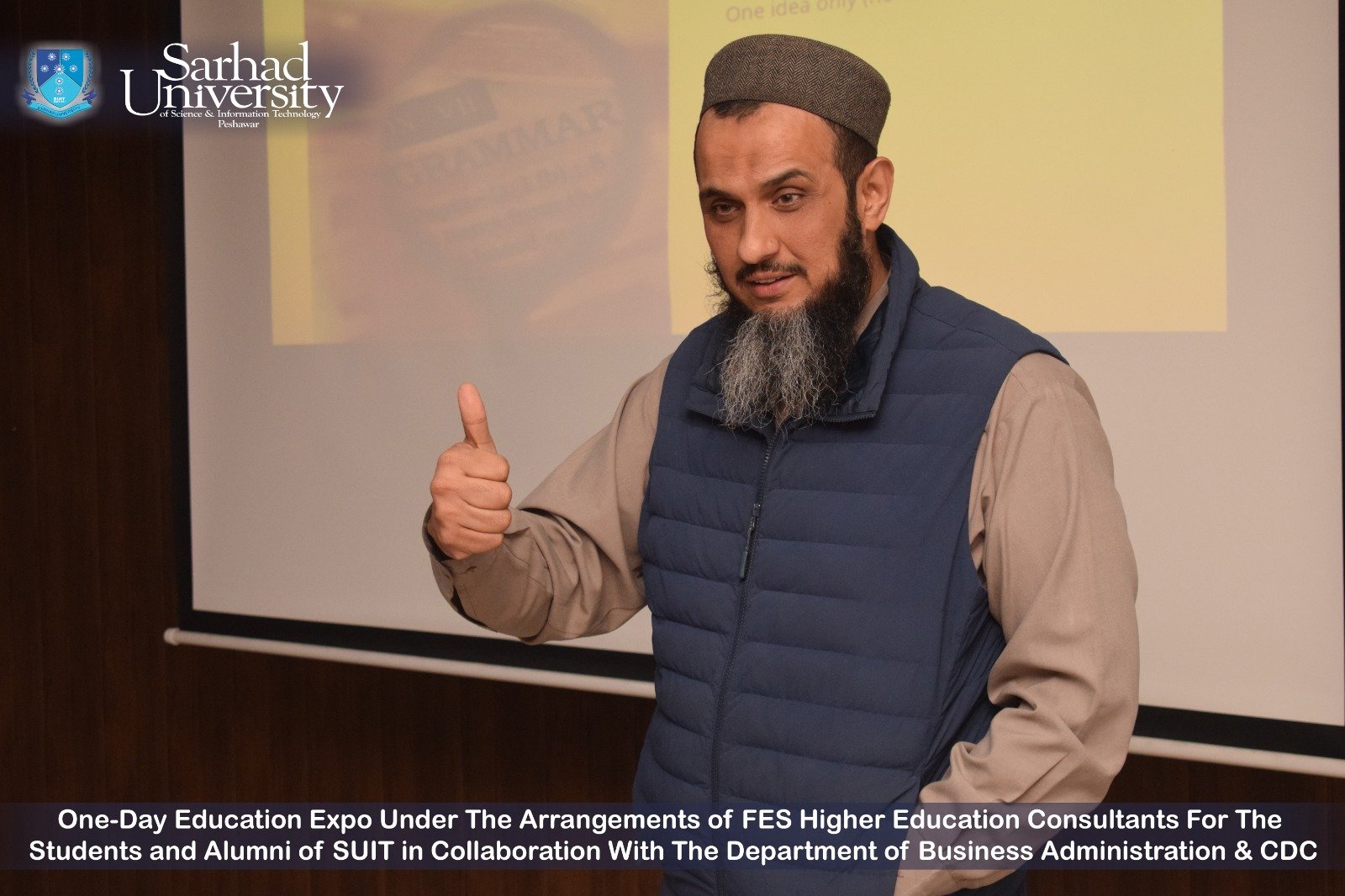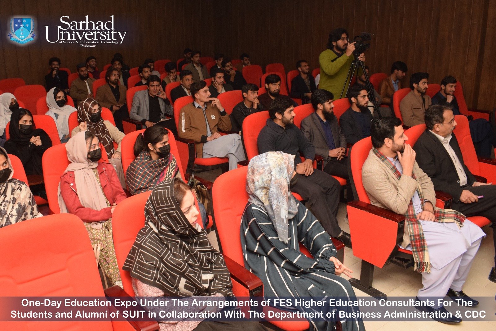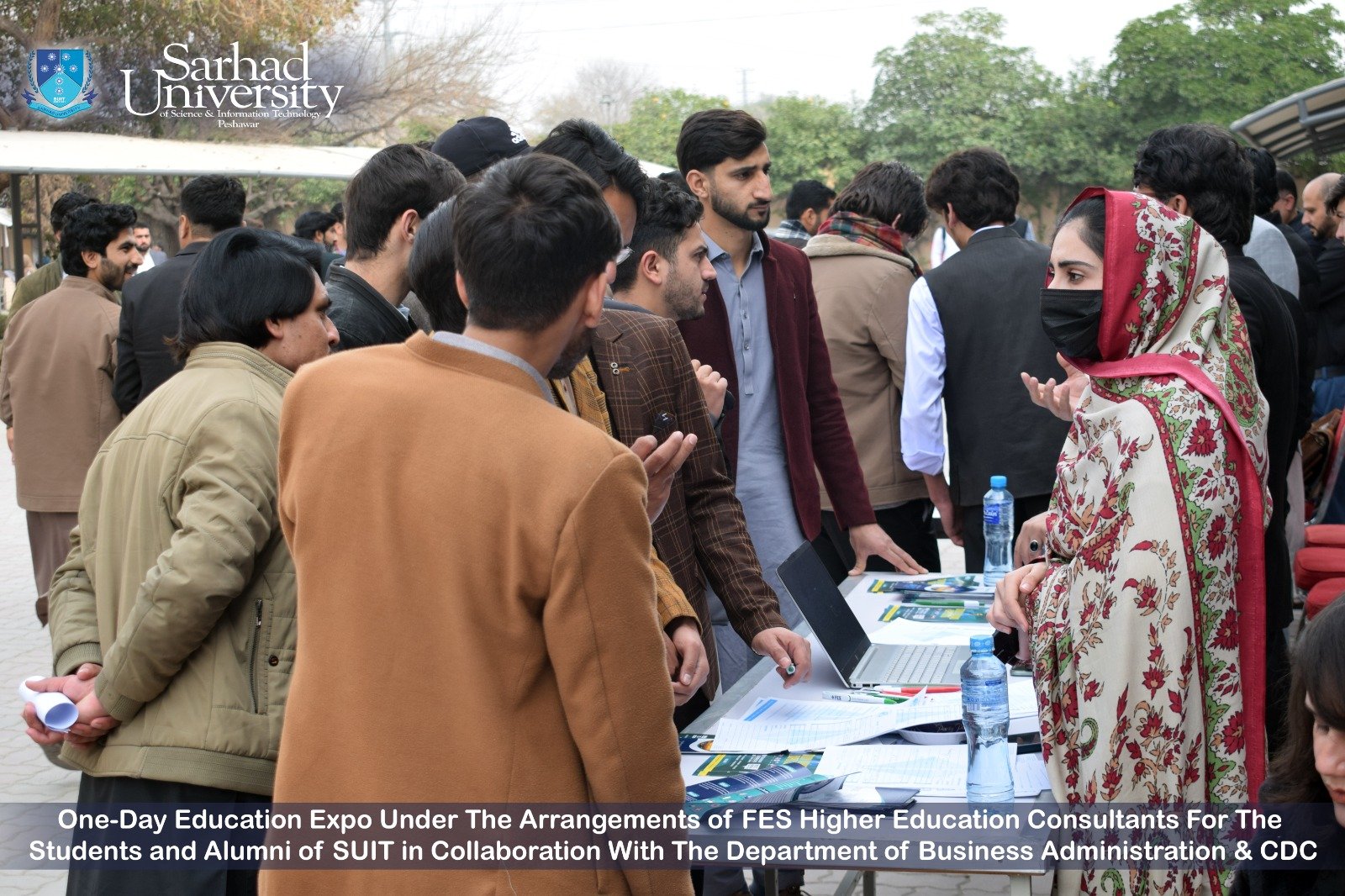 A One-Day Education Expo was organized under the arrangement of FES Higher Education Consultants for the students and alumni of Sarhad University of Science & Information Technology (SUIT), in coordination with the Department of Business Administration and the Career Development Centre (CDC).