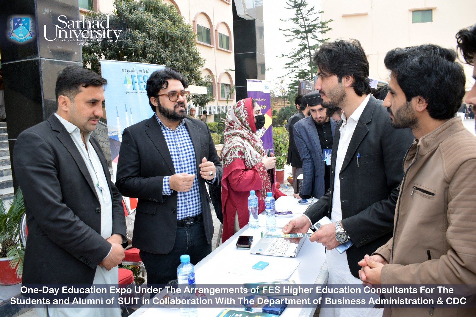 A One-Day Education Expo was organized under the arrangement of FES Higher Education Consultants for the students and alumni of Sarhad University of Science & Information Technology (SUIT), in coordination with the Department of Business Administration and the Career Development Centre (CDC).