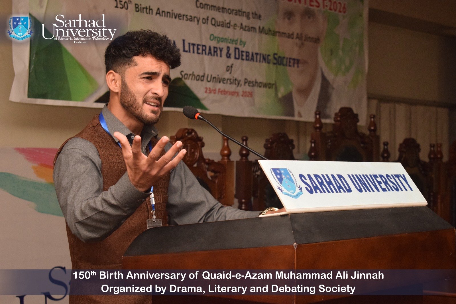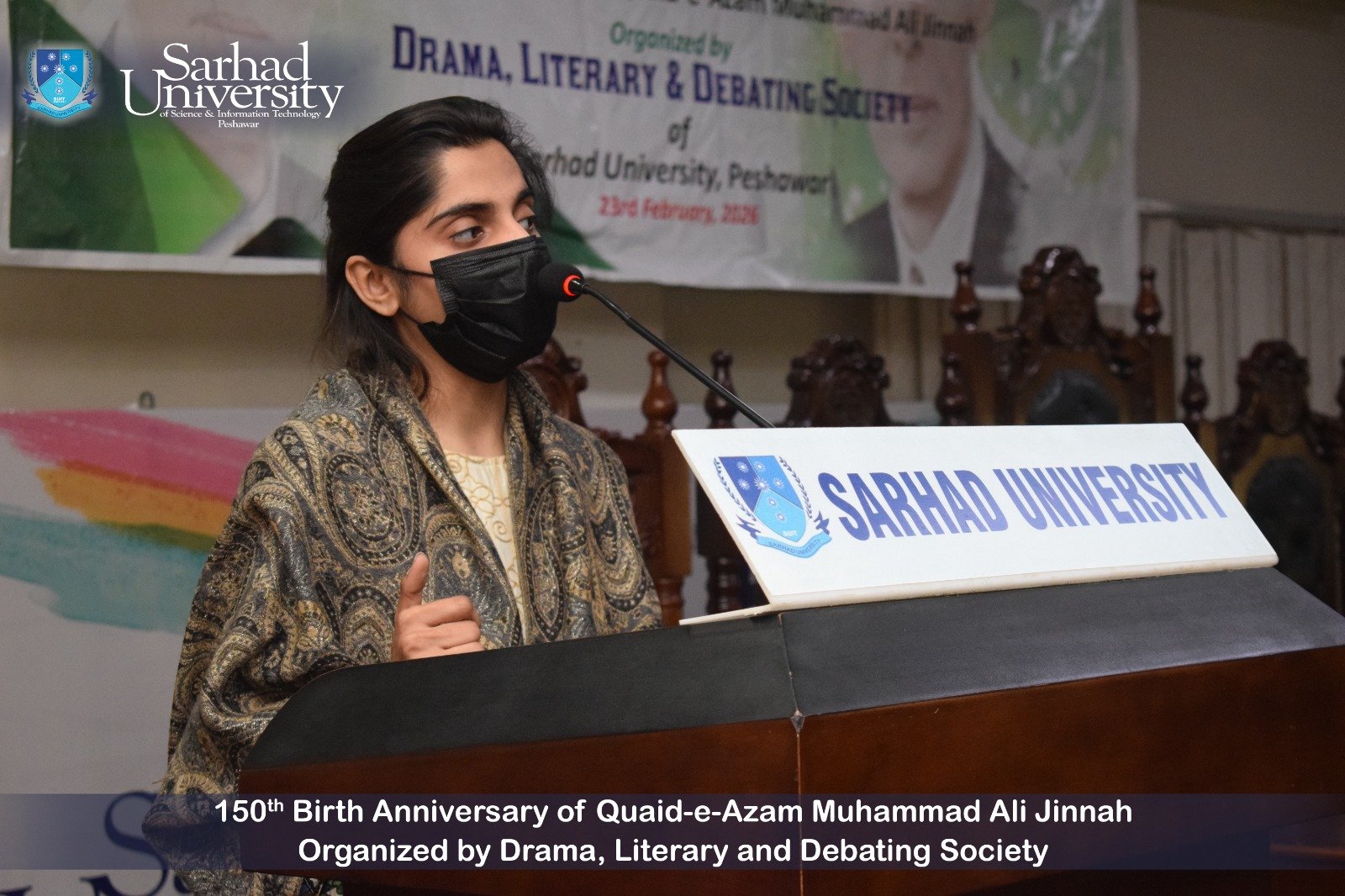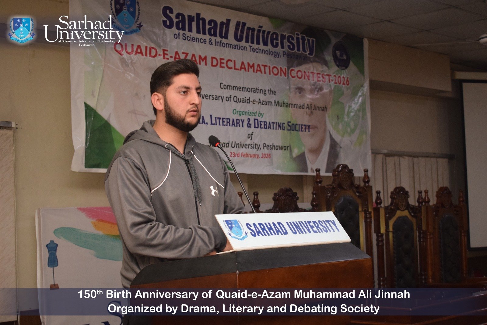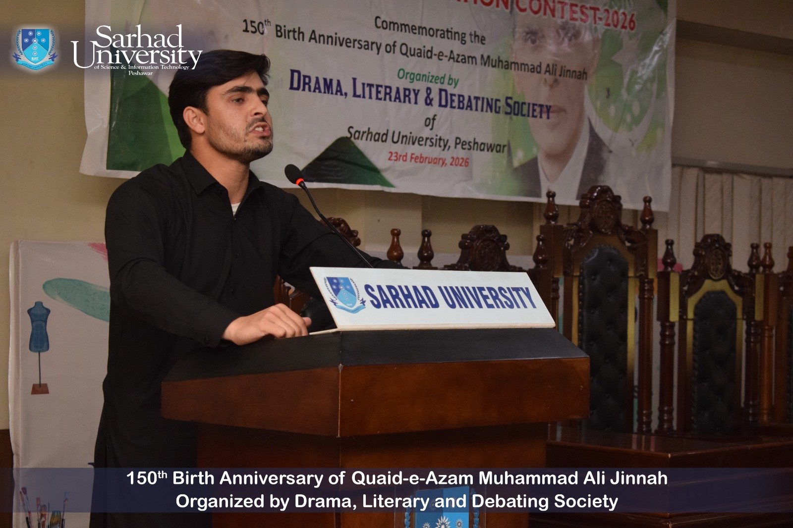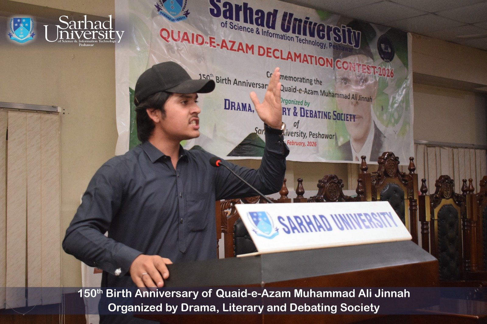 Sarhad University of Science & Information Technology commemorated the 150th Birth Anniversary of Quaid-e-Azam Muhammad Ali Jinnah through a Declamation Contest organized by the Drama, Literary & Debating Society.