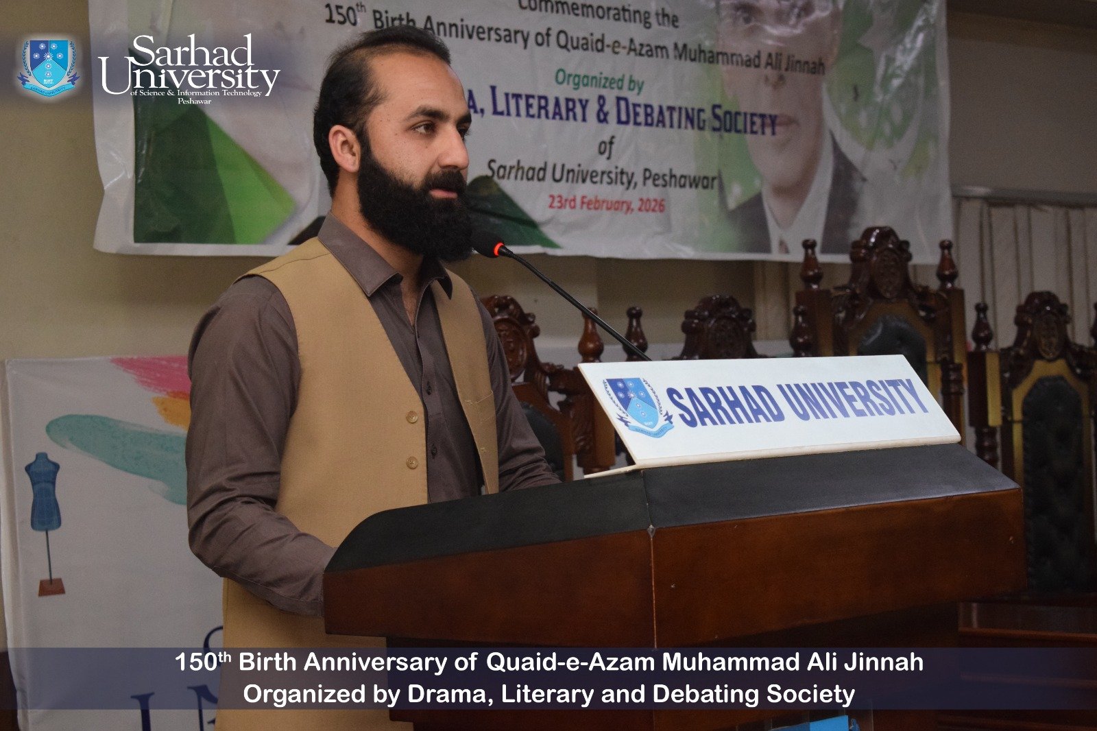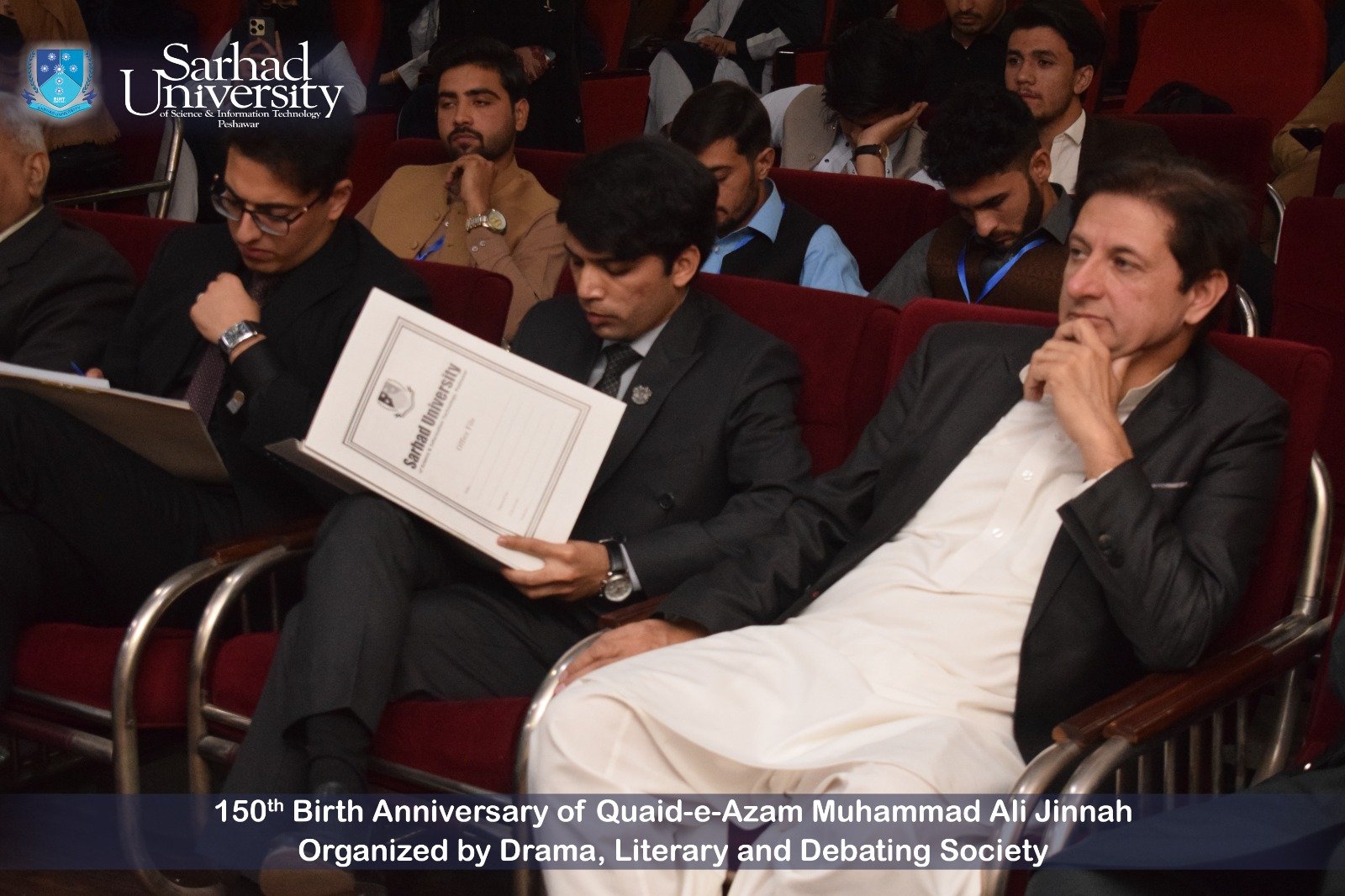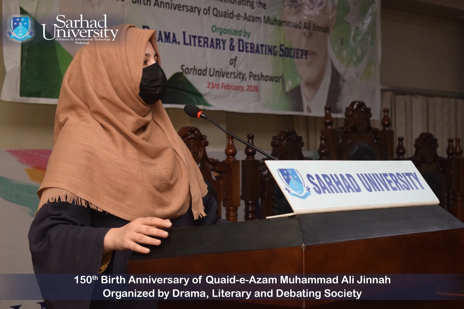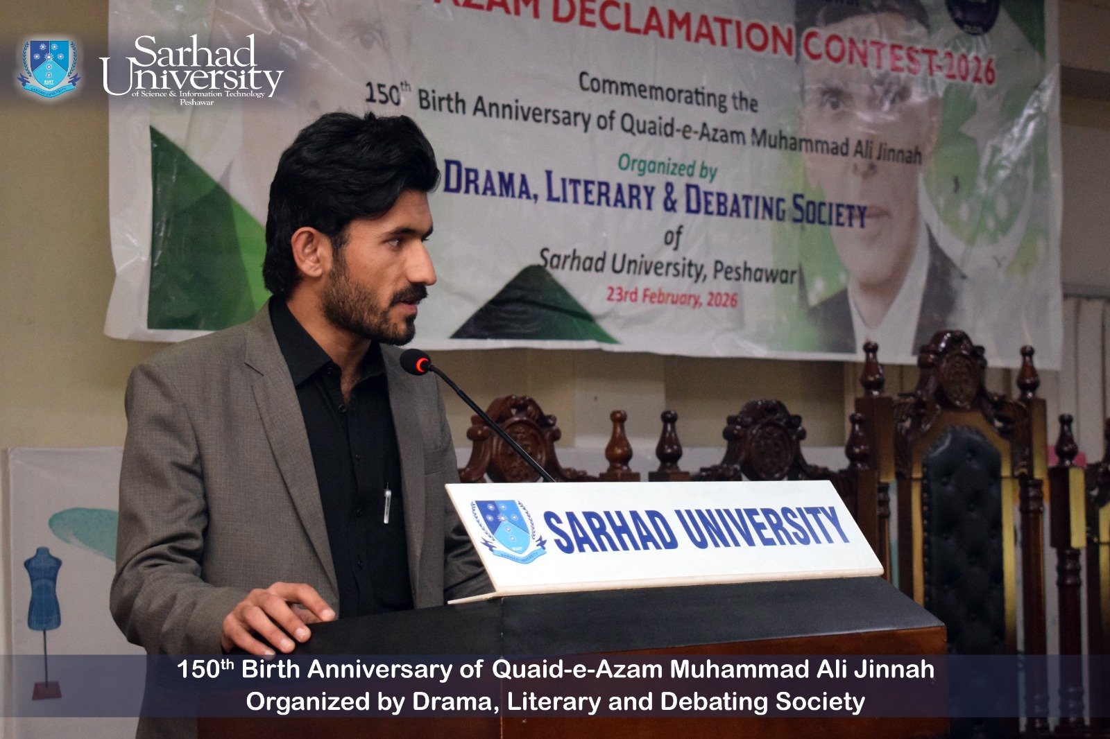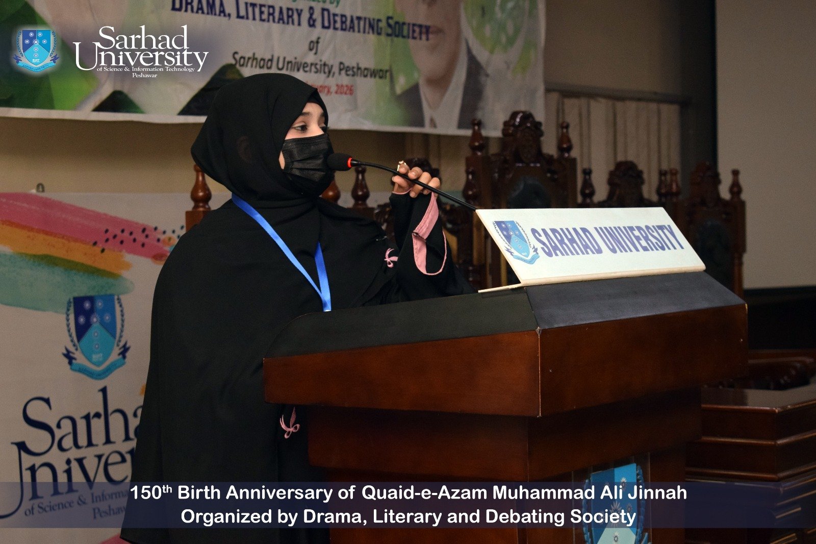 Sarhad University of Science & Information Technology commemorated the 150th Birth Anniversary of Quaid-e-Azam Muhammad Ali Jinnah through a Declamation Contest organized by the Drama, Literary & Debating Society.
